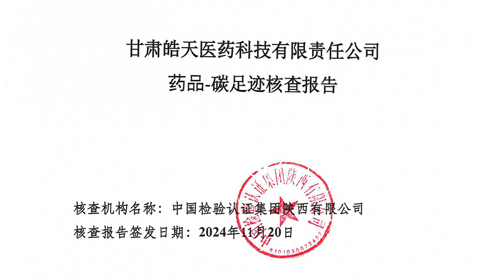 碳足跡核查報告--甘肅皓天醫藥科技有限責任公司